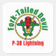Le centre de la conception est l'insigne P-38 Lightning Fork-Tail Devil utilisé par le 49th Fighter Squadron à Foggia, en Italie, pendant la Seconde Guerre mondiale. Au-dessus de la conception sont les mots "Fork-Tail Devil" écrit dans une police verte pour correspondre aux couleurs du dessin. Sous l'insigne se trouvent les mots "P-38 Lightning" dans une police rouge correspondant à ceux du logo. Le P-38 Lightning était connu par les pilotes allemands de la Luftwaffe comme le "diable à queue fourche" en raison de sa conception et de ses capacités uniques. Cet autocollant est disponible en deux tailles : petite (1,5") avec 20 sur chaque page, grande (3") avec 6 par page.