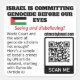 PALESTINE LIBRE - Crimes d'Israël listés par les Nations Unies Article Violation du code QR - Tous les bénéfices donnés - Carré Sticker Étiquette Roule en 2"x2" - Tous les bénéfices donnés à l'UNRWA, la ligne de vie de l'aide humanitaire aux Palestiniens à Gaza et à travers le Moyen-Orient. Ce qui est le plus incroyable dans ce génocide, c'est comment les gens peuvent le regarder sur leurs téléphones et leurs ordinateurs et le nier encore, malgré une intention évidente et ouvertement déclarée associée aux actes génocidaires. Israël bénéficie de l'impunité pour ses violations du droit international depuis son existence. Ce étiquette autocollant montre le site crimesbyisrael.com et son code QR ; le site liste un échantillon non exhaustif d'articles de l'ONU qu'Israël a violés, à commencer par l'article 6 (Génocide). Restez là où les gens ont besoin de le voir. Comme vous pouvez le voir sur les maquettes, le étiquette autocollant 1,25 po x 1,25 po est petit, mais il y a l'autocollant 3 po x3 po ici dans mon magasin Zazzle, et une option 2 po x2 sur mon magasin Etsy (lien : https://tinyurl.com/mrxmmv9r). Le nombre d'autocollants varie selon la taille et le magasin. Je téléchargerai une option téléchargeable pour imprimer sur des cartes ou du papier. Solidarité !