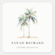 Sticker Carré Palmiers côtiers tropicaux Aquarelle Bleu Vert