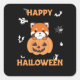Sticker Carré Panda Rouge En Pandas Cute Citrouille Joyeux Hallo