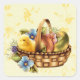 Sticker Carré Panier de Pâques avec oeufs et poussins
