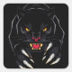 Une panthère noire, placée au centre de l'image, est représentée dans une illustration stylisée et audacieuse. Le visage de la panthère et le haut du corps sont présentés, avec sa bouche ouverte, révélant des dents pointues. Les yeux de l'animal sont d'un jaune frappant, et ses griffes sont étendues, ajoutant au sentiment de puissance et d'agression. La fourrure de la panthère est un noir profond, qui contraste fortement avec l'arrière - plan noir. Des lignes et des ombres bien définies et solides créent un sentiment de volume et de texture, mettant en valeur la forme musculaire. L'éclairage met l'accent sur les caractéristiques de la panthère, sans ombres visibles, suggérant un projecteur ou une esthétique graphique. Le style est audacieux, graphique et dynamique, idéal pour un logo ou une affiche. La composition et la perspective de l'image sont directement axées sur l'expression faciale intense de la panthère et sa position puissante, créant une impression de férocité et de force. Les détails importants comprennent les griffes prononcées et la bouche ouverte.
