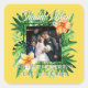 Un joli sceau d'enveloppe avec lequel remercier vos invités avec une feuille de monstère vibrante, frangipani et hibiscus cadre photo ensemble contre un arrière - plan jaune qui peut être changé à n'importe quelle couleur de votre choix. Personnalisez le libellé et ajoutez votre propre photo spéciale.
