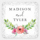 Cet autocollant chic présente les noms du couple dans un élégant script noir en haut, et un joli arrangement coloré de couronne florale aquarelle en bas. Une parties scintillant en confetti argent scintille la bordure et un arrière - plan blanc complète le design. Cet autocollant peut être facilement personnalisé avec vos noms personnalisés, et est parfait pour un fiançailles, mariage ou anniversaire. Vous pouvez même modifier la police, la couleur du texte et le style de police en utilisant l'option personnaliser !