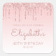 Sticker Carré Parties scintillant rose 40e anniversaire Merci de