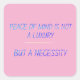 Your peace of mind is a must, a right, a duty. It is not granted, it's earned. It is not a luxury, it's a necessity. Save it, seek it, take it, fight for it.