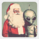 Sticker Carré Père Noël avec Alien spatial Sci Fi Noël
