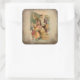L'art de la carte de Noël de l'ère victorienne met en vedette le Père Noël en robes violettes taillées en fourrure, offrant des cadeaux aux enfants à la gare sur un arrière - plan sépia artisan en détresse.