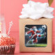 Sticker Carré Père Noël lance un ballon de football en hiver