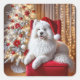Sticker Carré Père Noël Samoyed Dog sur une chaise rouge