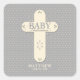 Sticker Carré Personnaliser, Dédication bébé Crème et Croix gris