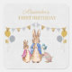Personnalisez ce Pierre le lapin 1er anniversaire design avec le nom d'un enfant et l'événement.