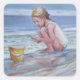 Sticker Carré Petite fille beachcomber avec seau jaune