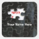Identifiez votre propriété avec ces autocollants carrés uniques ! Abattez cet autocollant fantaisiste sur les livres ou d'autres biens. Cet autocollant carré porte une photo de gros plan sur un segment noir rayé bleu d'un puzzle exposant une pièce manquante. Un concept pour l'individualisme, l'indépendance, la pièce manquante du puzzle ou tout ce que vous voulez. Sous "Personnalisez-le", remplissez les champs modèles, supprimez le texte complètement ou cliquez sur "Customisez-le !" pour sélectionner le style, la taille et la couleur de police que vous préférez.