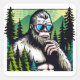 Curieux Sasquatch qui se cache dans les bois en regardant hors des arbres. Ai art fait dans un style pop art comique.