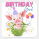 Sticker Carré Pig Piggy Anniversaire Rose Fille Animaux Amateurs