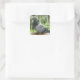 Un charmant autocollant représentant un pigeon serein perché immobile sur une corniche, avec des arbres à feuillage persistant dans l'arrière - plan.