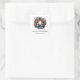 Stickers avec une jolie couronne de Noël. Une image festive avec une couronne de pin décorée de fleurs rouges, sainte et un joli arc bleu. Délicieux.