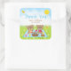 Ce sticker mignon et capricieux présente des ours adorables qui pique-niquent sur un tissu en vichy bleu avec des friandises comme le miel, la pastèque, la confiture de fraise, la limonade et la tarte. Dans l'arrière - plan est un ciel bleu vif et soleil, papillons et marguerites. Le texte combine les polices décoratives et serif pour un look élégant et moderne. C'est parfait pour un anniversaire de printemps ou d'été.