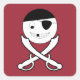 Sticker Carré Pirate souriant avec épées croisées sur rouge