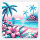 Sticker Carré Pixel Art Ocean Art rose et bleu Tropical Art