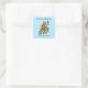 Un mignon lapin brun se trouve au milieu de fleurs roses sur un fond bleu clair