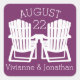Mariage moderne à thème de plage avec des chaises adirondack en blanc. Personnalisez avec les noms du couple et la date spéciale. Modifiez la couleur arrière - plan selon la préférence.