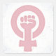 Symbole féminin avec une poing au centre dans les tons roses, sur t-shirts, sueurs, boutons, autocollants, cadeaux.