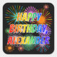 Sticker Carré Prénom "ALEXANDER", Amusant "HEUREUX ANNIVERSAIRE"