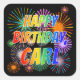 Sticker Carré Prénom "CARL", Amusant "HEUREUX ANNIVERSAIRE"