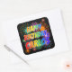 Sticker Carré Prénom "CARLOS", Amusant "HEUREUX ANNIVERSAIRE"
