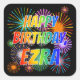 Sticker Carré Prénom "EZRA", Amusant "HEUREUX ANNIVERSAIRE"