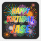 Sticker Carré Prénom "JASE", Amusant "HEUREUX ANNIVERSAIRE"