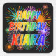 Sticker Carré Prénom "KIARA", Amusant "HEUREUX ANNIVERSAIRE"
