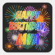 Sticker Carré Prénom "MYA", Amusant "HEUREUX ANNIVERSAIRE"