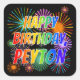 Sticker Carré Prénom "PEYTON", Amusant "HEUREUX ANNIVERSAIRE"