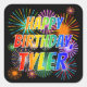 Sticker Carré Prénom "TYLER", Amusant "HEUREUX ANNIVERSAIRE"