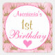 Fille et jolie rose et or parties scintillant princesse couronne brillamment 1er anniversaire autocollant carré. Vous pouvez facilement ajouter le nom de votre choix et modifier la couleur et la police en utilisant l'option personnaliser !