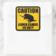 Une silhouette d'un castor tenant un fusil d'assaut et l'expression "Attention, castor armé en service"