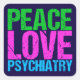 Peace Love Psychiatry en lettres de néon brillantes et audacieuses de vert, rose et bleu. J'adore le domaine de la psychologie et de la médecine se combiner dans ma spécialité, la psychiatrie. Personnalisez avec les informations de votre psychiatre comme un cadeau.