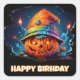 J'ai pensé avoir un Jack-o'-lantern portant un casquette d'anniversaire aux couleurs psychédéliques et j'ai aimé celui-ci. J'ai mis un trait autour du joyeux texte d'anniversaire pour qu'il apparaisse mieux. Tout le texte de la conception peut être édité. J'ai fait enlever certains de l'arrière - plan.