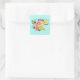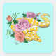 Un Python albino jaune se déplace autour de roses roses et pêche dans un arrière-plan turquoise.