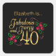 Sticker Carré Quarante fabuleux or Noir Roses Rouge Anniversaire