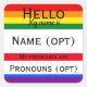 Un autocollant arc-en-ciel avec les mots classiques "Bonjour, mon nom est" mais avec l'ajout "Mes pronouns sont". Si vous avez besoin de vos propres autocollants préimprimés, entrez-les. Sinon, effacez le nom et le pronom pour une utilisation générale. Cela permet aux participants de la réunion de partager leur nom et leurs pronoms. Créez un environnement ouvert et inclusif avec cet autocollant simple mais impactable. Cela favorise un environnement de compréhension et de respect, encourage la communication ouverte et contribue à créer un environnement communautaire plus inclusif.
