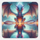 Illustration d'un dragon regardant son reflet dans l'eau.