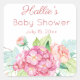 Sticker Carré Remerciement pour Baby Shower hydrangea rose et pi