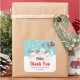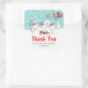 Cet autocollant de remerciement pour baby shower mignon et amusant présente une adorable famille de renards arctiques dans un cadre merveilleux d'hiver avec des arbres enneigés et un oiseau rouge sur une branche avec saint. Les renards aux chapeaux de Santa apportent une touche festive. Dans l'arrière - plan se trouve un ciel vert bleu turquoise et des flocons de neige tombants. Le texte combine les polices décoratives et sans serif pour un look élégant et moderne. C'est parfait pour un baby shower à thème de Noël.