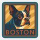 Portrait rétrograde audacieux de Boston Terrier, qui capte le manteau caractéristique de la race, de grands yeux ronds et des oreilles dressées. Connu comme le "Gentleman américain", ce petit chien amical et intelligent est apprécié pour son charme et sa personnalité spirituelle.