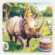 Sticker Carré Rhino portant le casquette d'anniversaire dans le