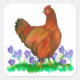 Sticker Carré Rhode Island Red Chicken Aquarelle Violettes